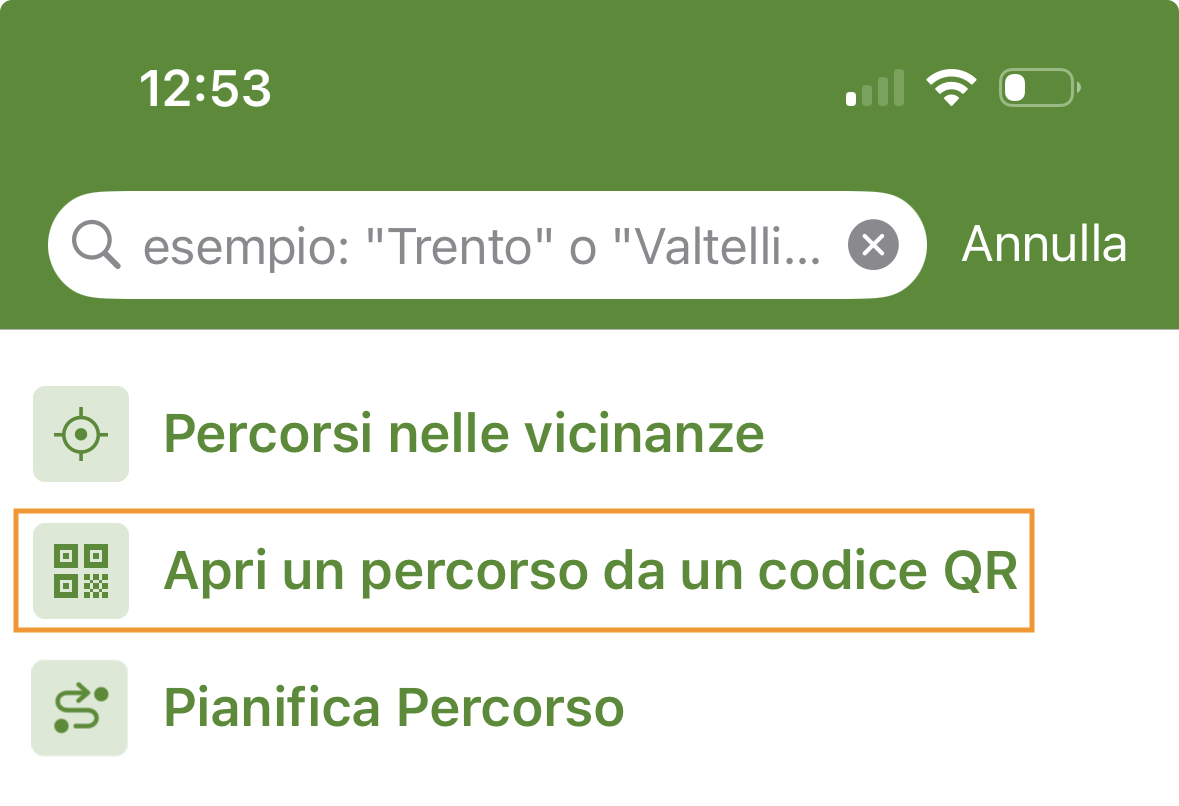 Lo troverai nella barra di ricerca dei percorsi dell'App, come opzione nell'elenco che si apre facendo clic sulla barra di ricerca dell'App.
