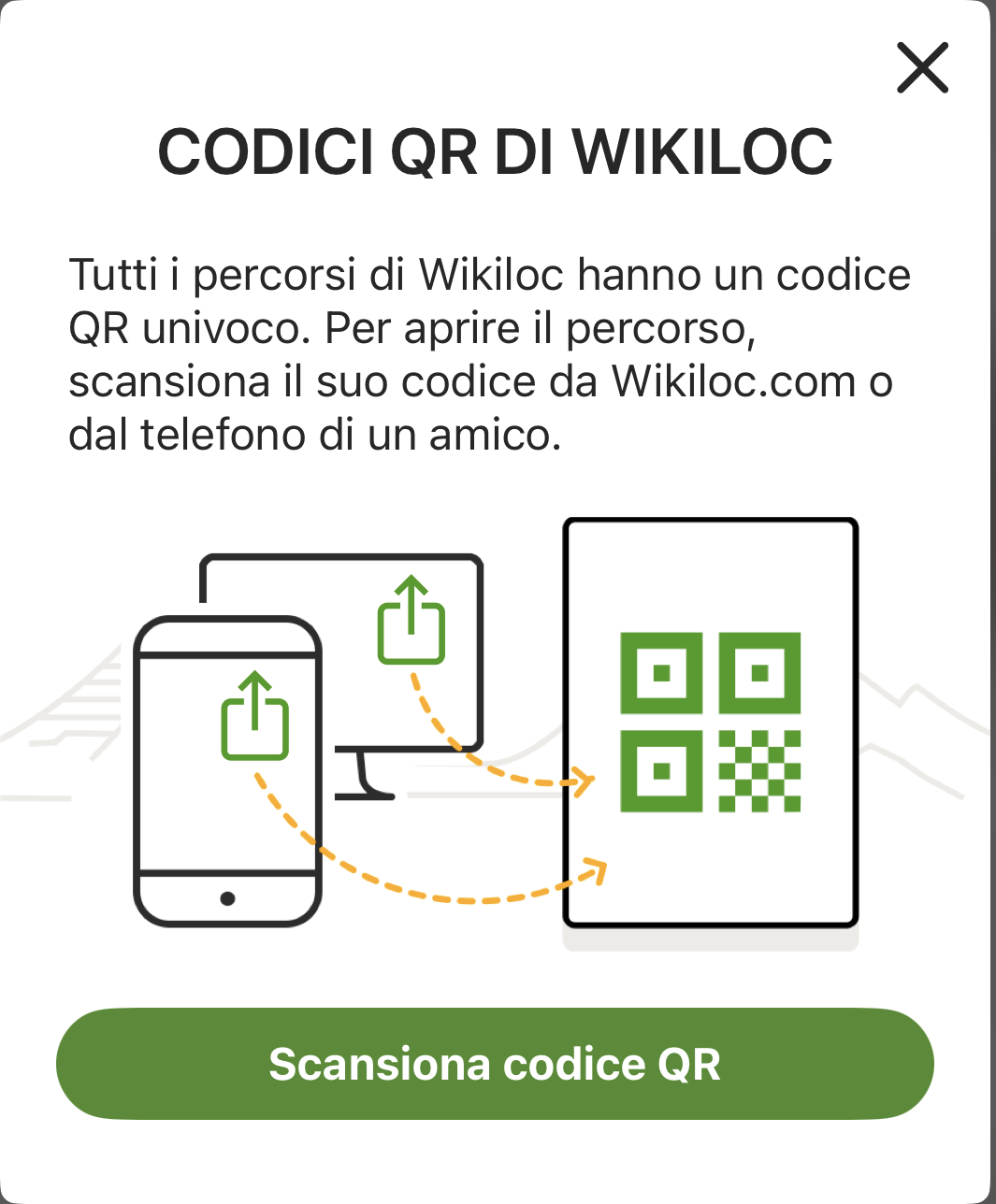 Abbiamo integrato un lettore di codici QR nell'App di Wikiloc così puoi aprire automaticamente i percorsi o i profili.